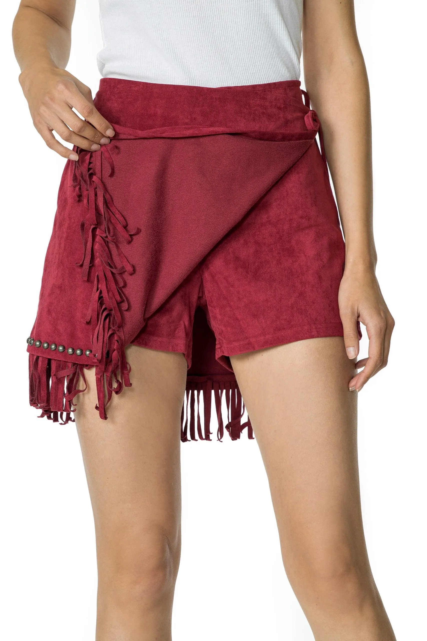 This little beauty is that ultra-soft blend that looks like suede, but has a little give to it. It’s a straight-line silhouette trimmed with studding and some sassy fringe and it comes in four gorgeous colors – good luck picking just one! And get this – it’s got built-in shorts, so you don’t have to worry about this wrap skirt going awry. Perfection.
