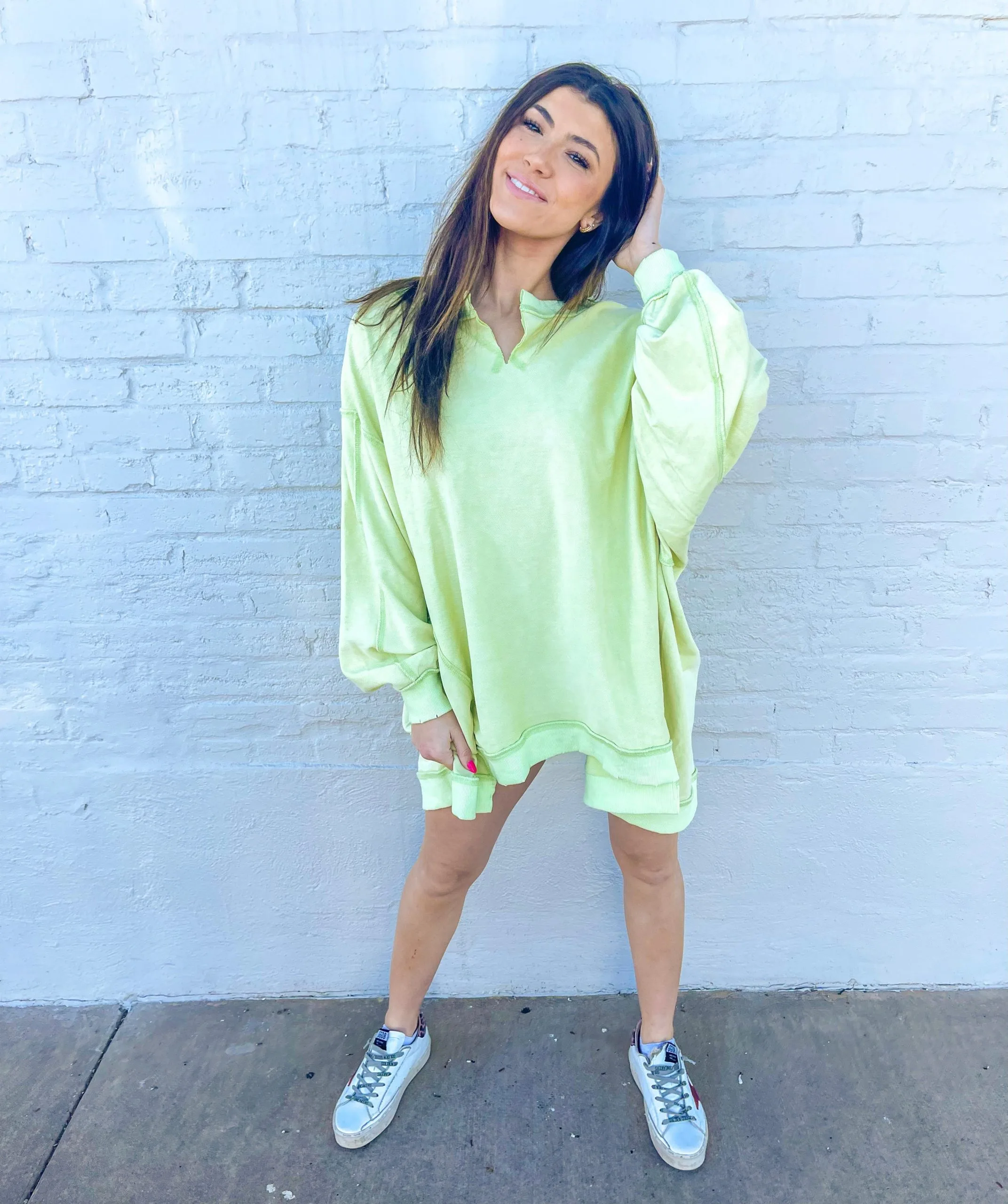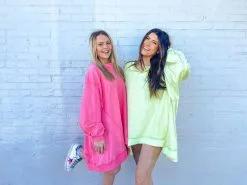 This tunic dress is one of my favorite transitional pieces! A sweatshirt- type material with a a cutout v neck makes this the perfect combo of comfy and cute! This has an oversized fit and runs true to size! Mackenzie and Jacie are wearing a size small!