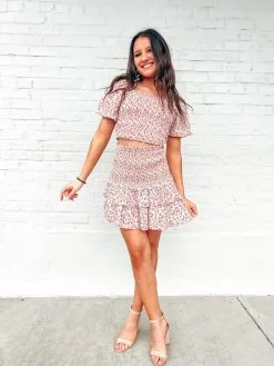 The Hazel smocked skirt has full smocking with a ruffle detail. The baby pink and floral detail makes this dainty set so sweet for spring and summer!