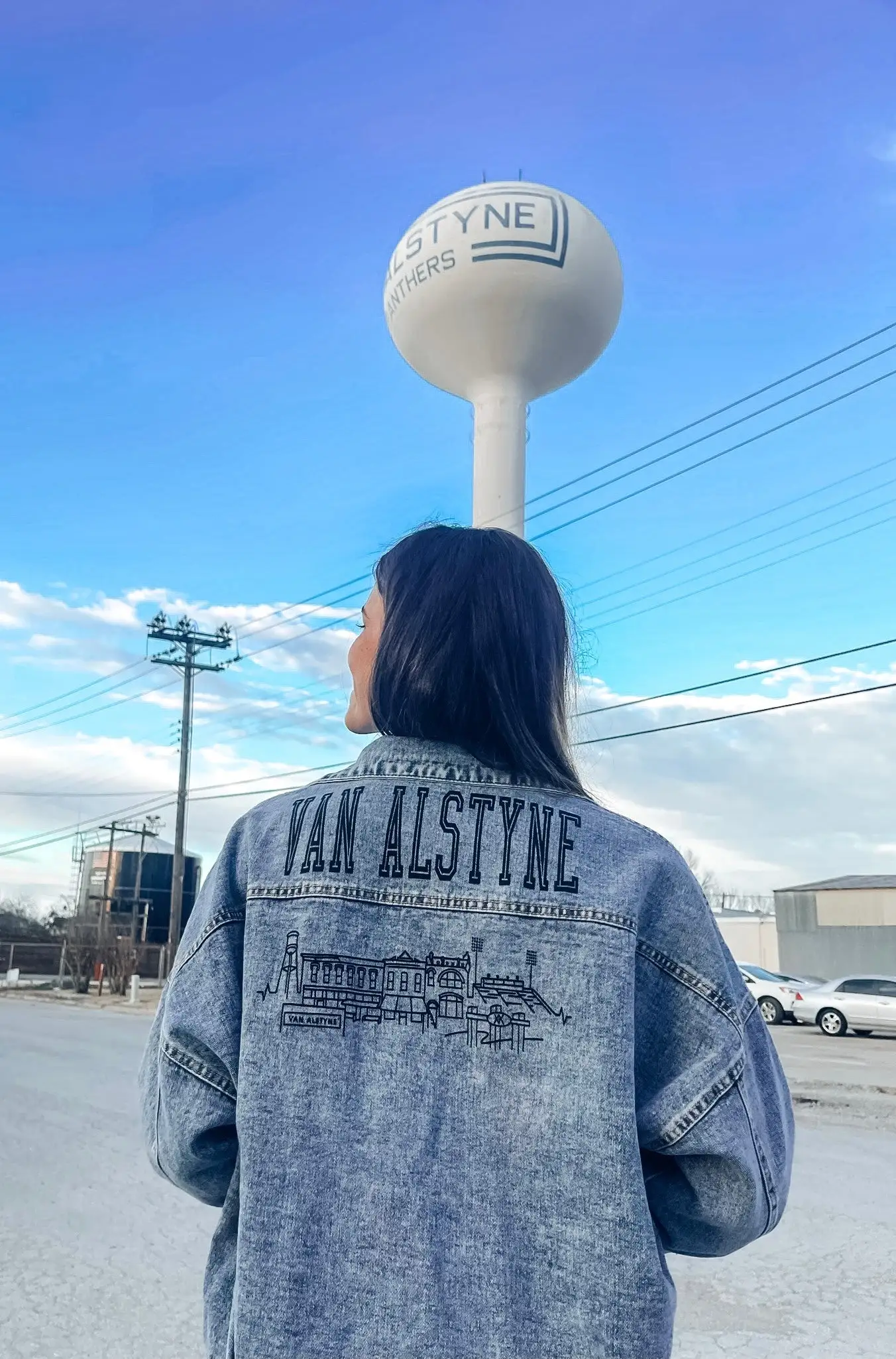 This denim jacket is as exclusive and limited edition as they come! Support your hometown in our new skyline denim jacket! From City Drug, Panther Stadium and even Hoenysuckle Rose is all apart of this one of a kind custom design! This denim jacket cut is an oversized boyfriend denim! For the oversized look we recommend true to size or size down for something more fitted!
