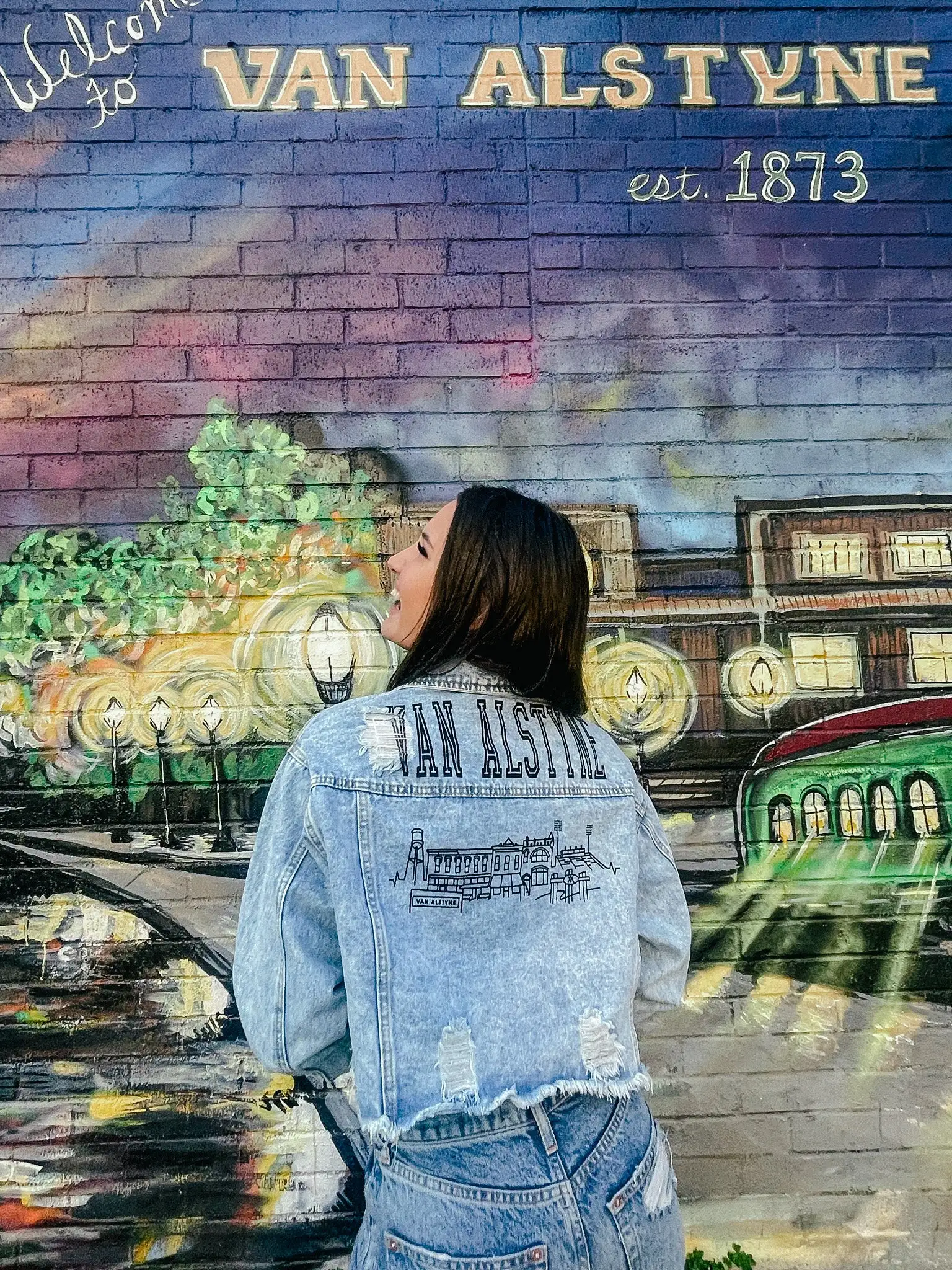 Be the first to review “Honeysuckle Rose Boutique Van Alstyne Custom Skyline Cropped Denim Jacket” Cancel reply
