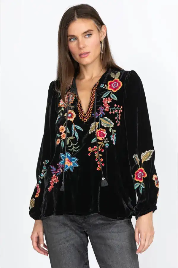 Be the first to review “Johnny Was Ardell Velvet Relaxed Blouse-Black” Cancel reply