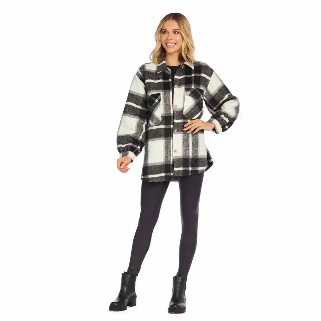 Meet your new favorite outfit, our Highland Black Plaid Shacket. The fuzzy plaid shacket features an oversized fit, balloon sleeves, and chest pockets. The shacket measures approximately 29 1/2″ from shoulder to hem on size small. This shacket features a detailed plaid pattern. We love to add this over a simple black cami and pair with black leggings and booties.