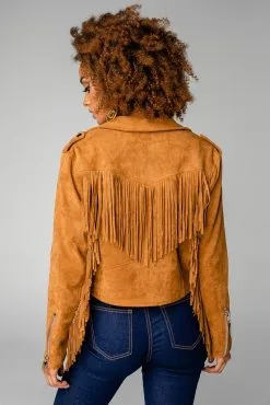 Buddy Love Francesca Fringe Suede Jacket-Camel