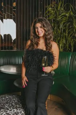 Buddy Love Fancy Strapless Feather Crop Top-Noir